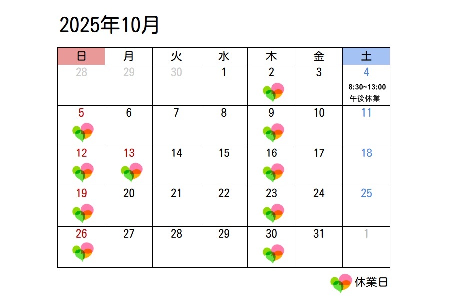 また、木曜・日曜・祝日は通常通り休業日となります。