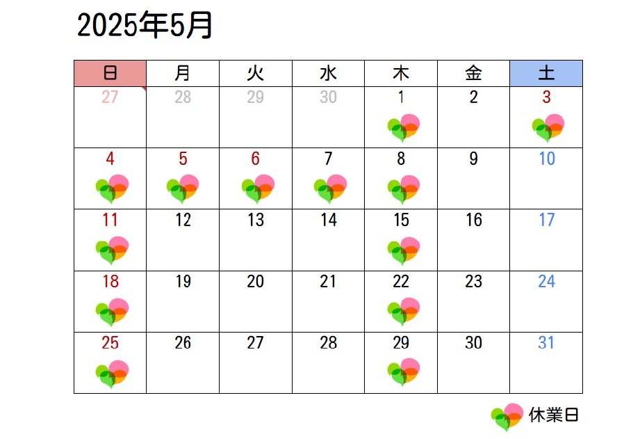 2025年5月3日(祝)~5月8日(木)を連日休業日とさせていただきます。