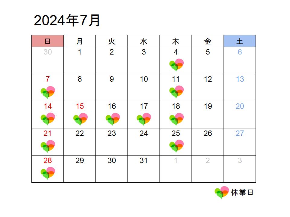 2024年7月14日(日)〜18日(木) の5日間は連続して休業日となります。